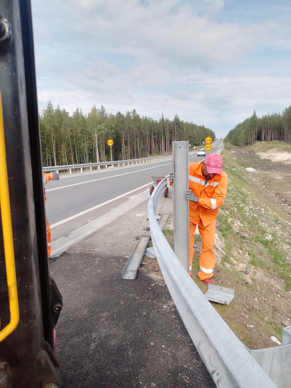 Выполнили монтаж оцинкованного барьерного ограждения с удерживающей способностью 190 кДж и 250 кДж на участке автомобильной дороги г. Екатеринбург - г. Реж - г. Алапаевск.